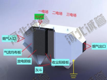 荷電粉塵的捕集過程:在兩個曲率半徑相差較大的金屬陽極和陰極上,通過高壓直流電,維持一個足以使氣體電離的電場,氣體電離后所產生的電子:陰離子和陽離子,吸附在通過電場的粉塵上,使粉塵獲得電荷。荷電極性不同的粉塵在電場力的作用下,分別向不同極性的電極運動,沉積在電極上,而達到粉塵和氣體分離的目的。